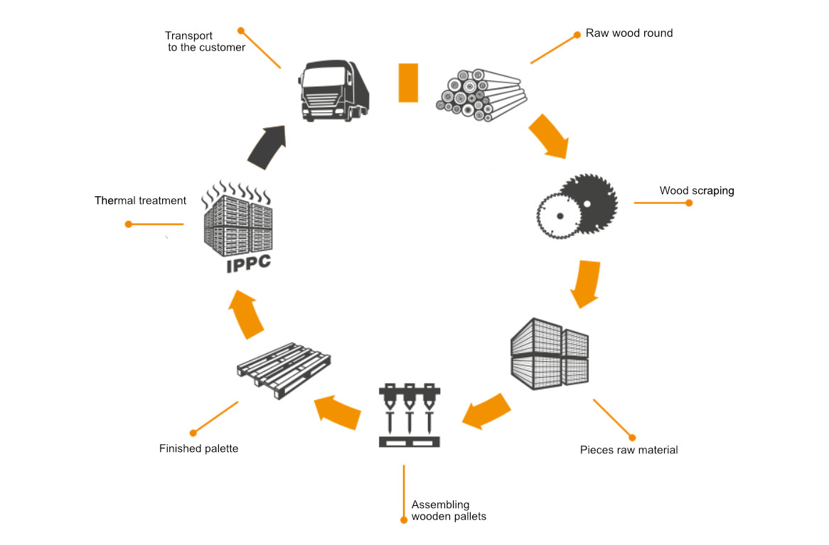 Each pallet undergoes heat treatment in compliance with the ISPM 15 standard.